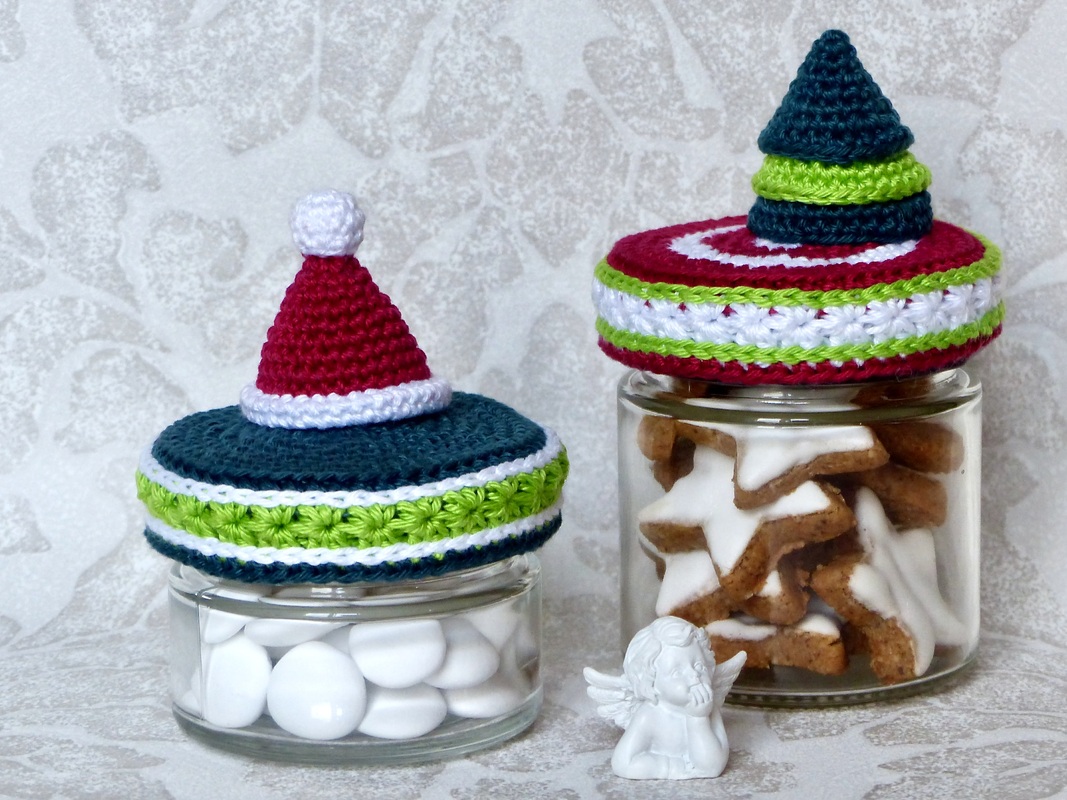 Die fertigen Applikationen werden ca. 3-4 cm hoch - die Größe des Deckelbezuges lässt sich ganz leicht anpassen, sodass die Anleitung für verschiedenste Gläsergrößen geeignet ist.