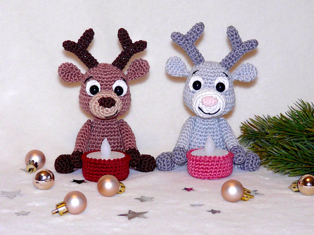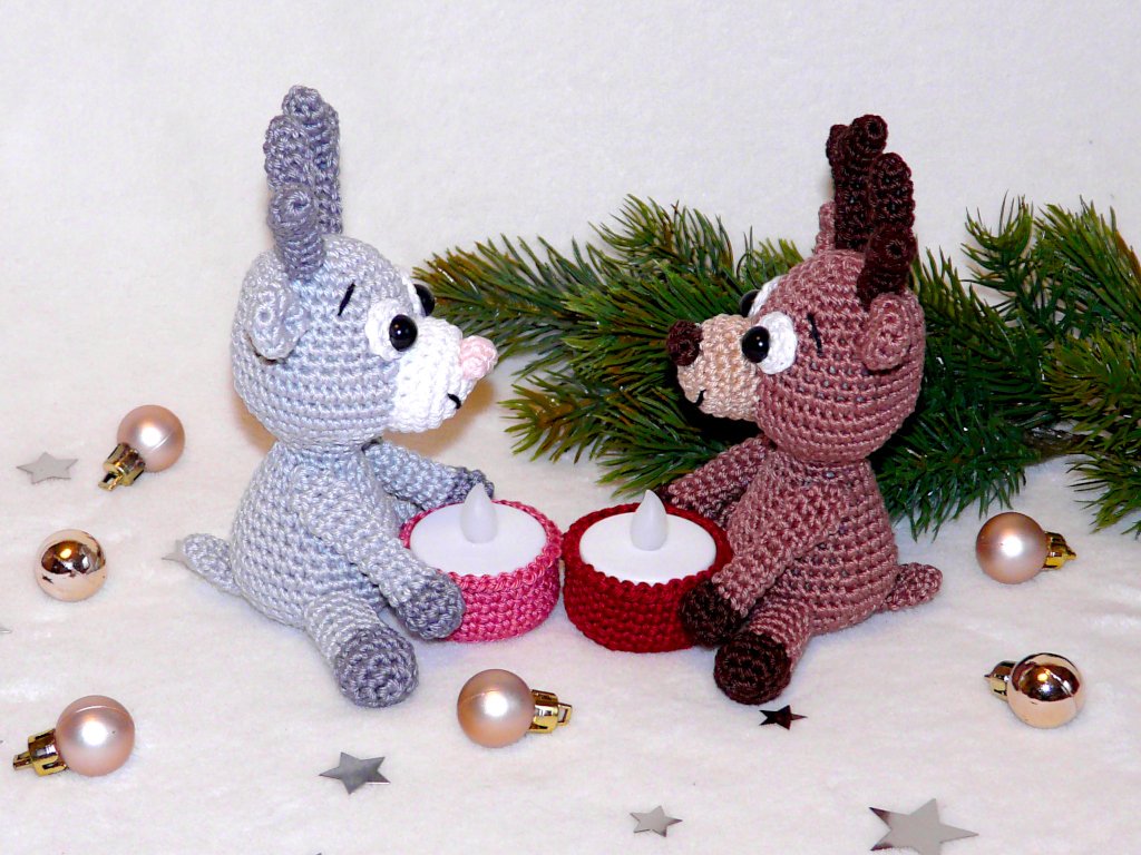 Je nach Garn- und Häkelnadelstärke variiert die Größe von den Rentieren.