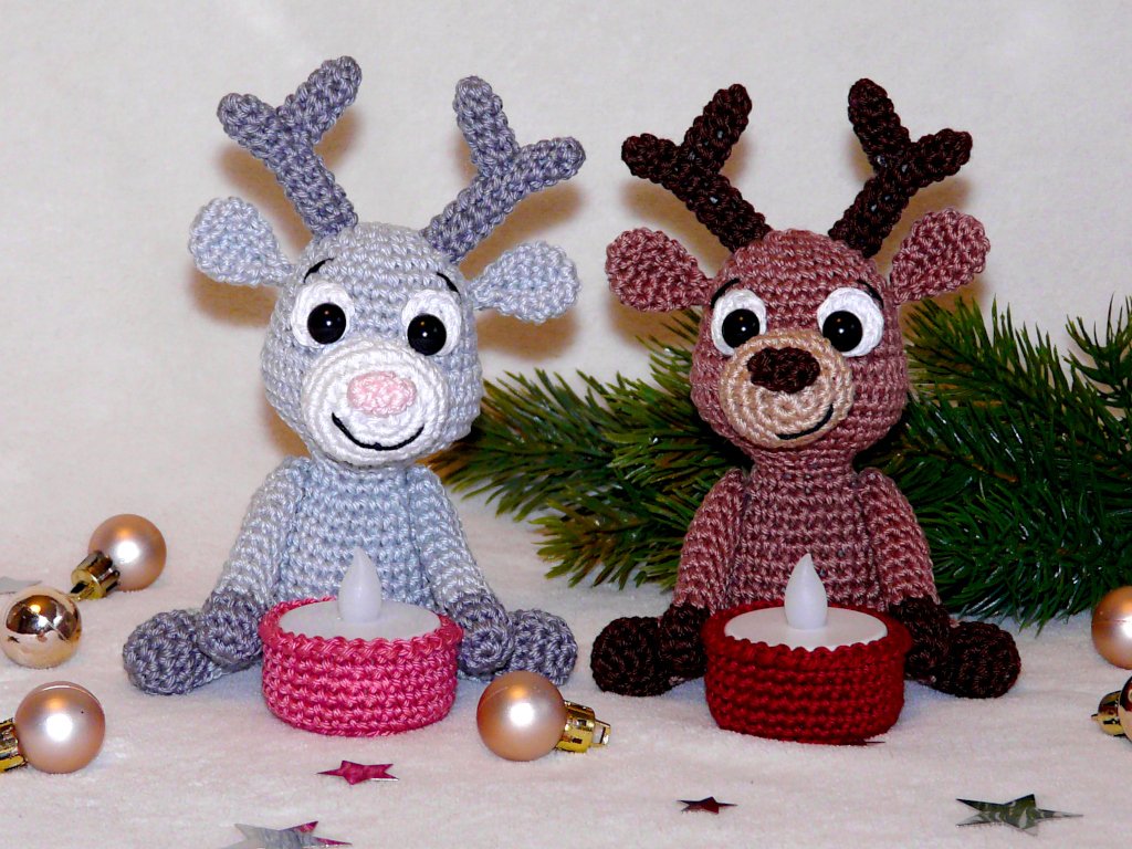 Gerade zur Winter- und Weihnachtszeit liebe ich es, bei dem Schein von Teelichtern und Kerzen, gemütlich auf der Couch zu sitzen. Passend dazu habe ich diese süßen Rentier Teelichthalter gehäkelt.