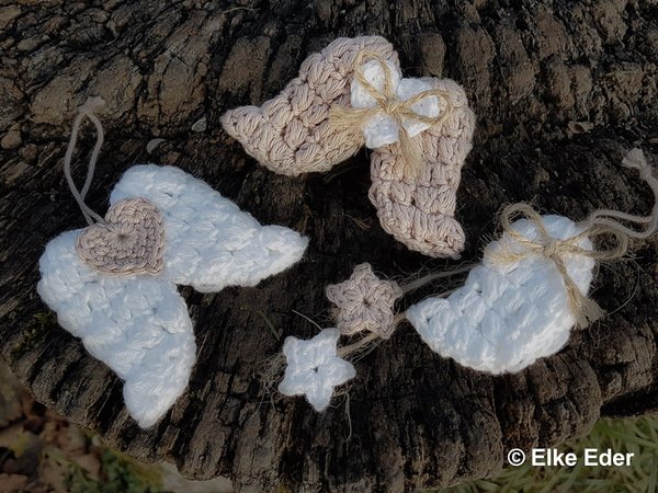 Motivgröße Einzelflügel mit Sternen: ca. 10 cm (Höhe ohne Schlaufe) x ca. 3,5 cm (Breite)