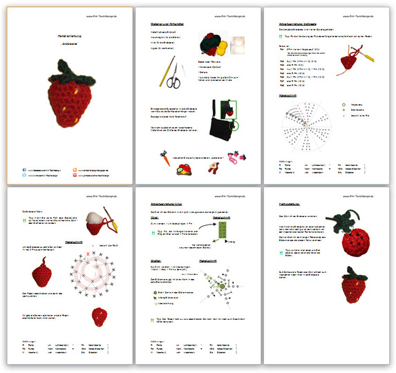 Variieren Sie mit der Garn- und Nadelstärke um kleinere oder Größere Erdbeeren zu erhalten.