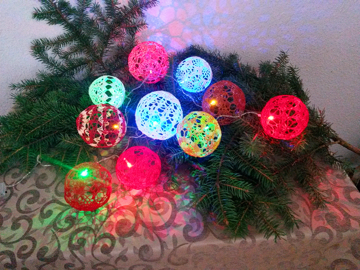 ... und in diesem Jahr beleuchten sie Ihre selbstgehäkelten Weihnachtskugeln.
