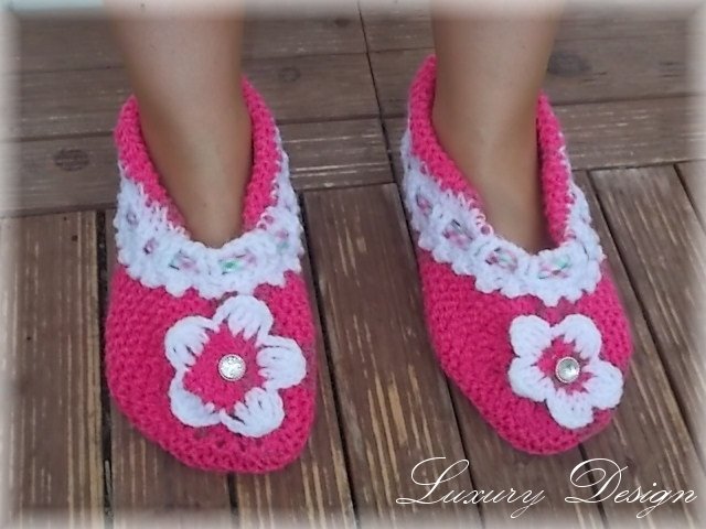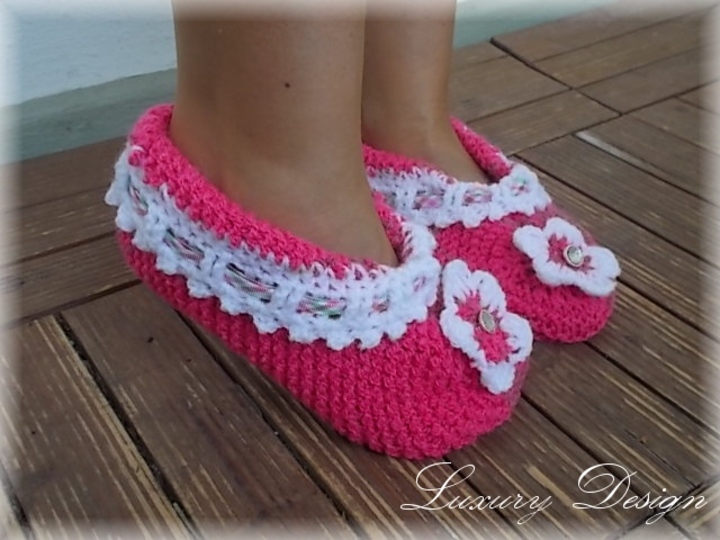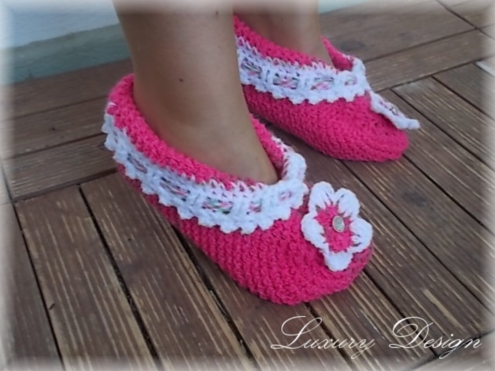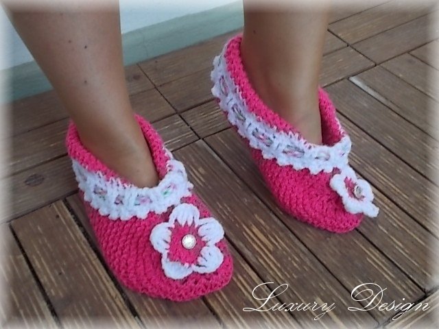 Ein Hausschuh für Frühjahr und Sommer, so leicht,das man ihn kaum am Fuß spürt.Super einfach zu arbeiten ohne Nadelspiel.