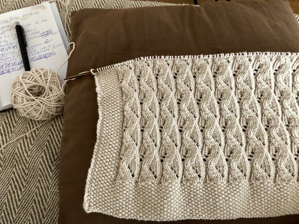 Für geübte Anfänger geeignet, die neben rechten und linken Maschen auch Umschlag und Maschen zusammen stricken können.