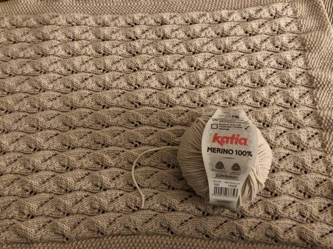 Ich habe für die Decke Merino-Wolle von Katia 100% (Lauflänge 102 m / 50 g) benutzt. Es kann aber auch jede andere beliebeige Wolle in ähnlicher Stärke verwendet werden. Damit die Decke schön weich wird, würde ich aber auf jeden Fall Merino-Wolle empfehlen. Ihr benötigt für die angegebene Größe ca. 5 - 6 Knäuel à 50 g.