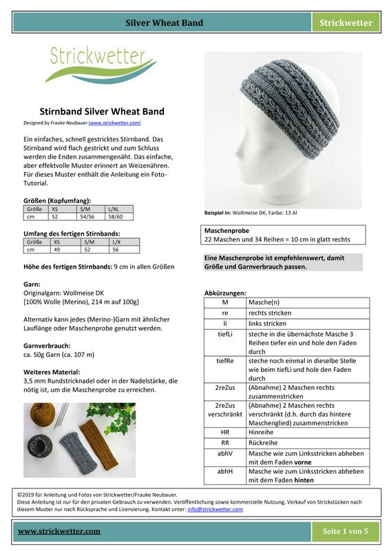 Das einfache, aber effektvolle Muster erinnert an Weizenähren. Für dieses Muster enthält die Anleitung ein Foto-Tutorial. Zusätzlich gibt es ein extra Video-Tutorial für das Muster. Link in der Anleitung.