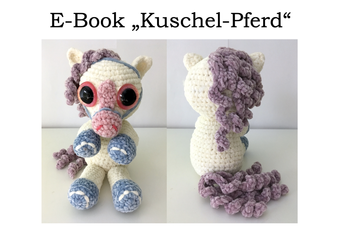 …. Große, glitzernden Augen schauen dich an und lassen dein Herz fast schmelzen… das Kuschelpferd (ca. 24 cm groß) aus dicker Chenille-Wolle ist ein zauberhaftes und einfaches Häkelprojekt …