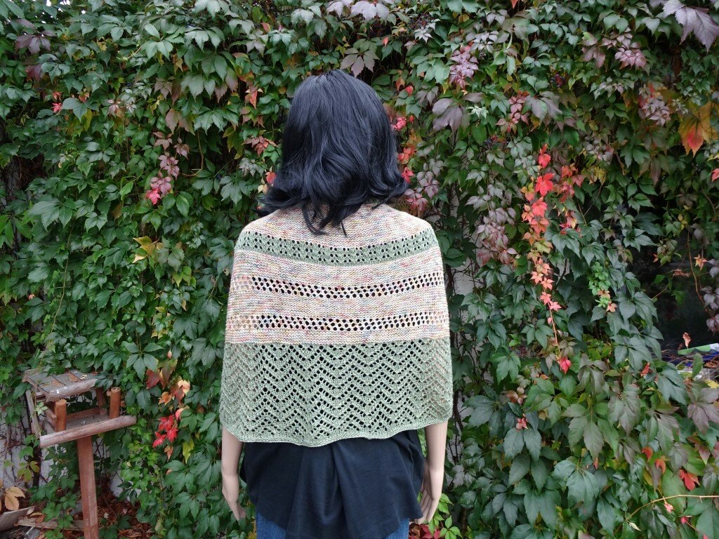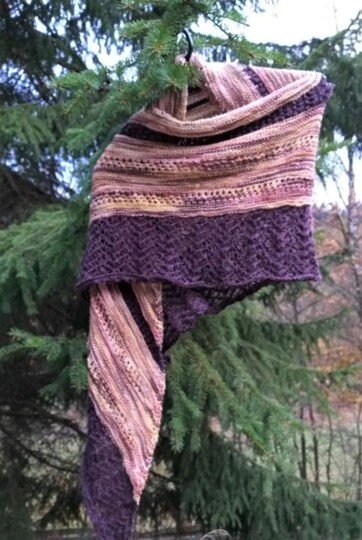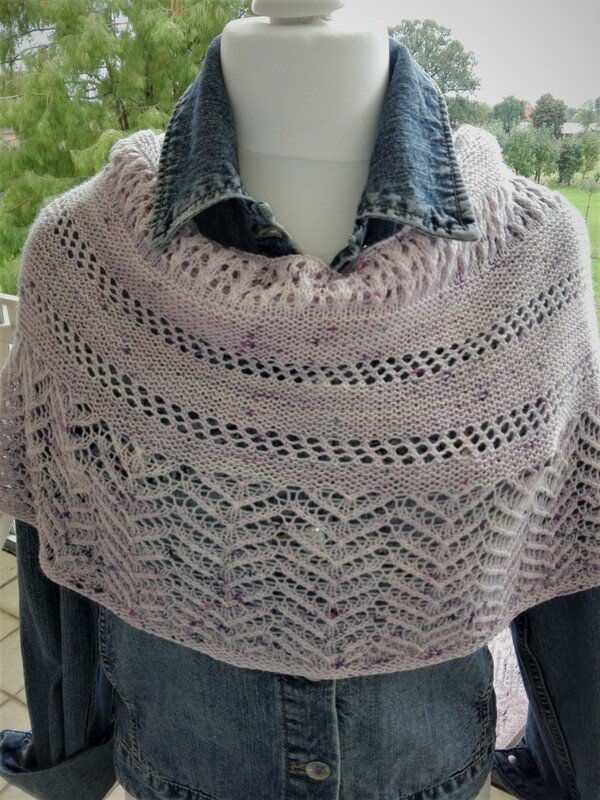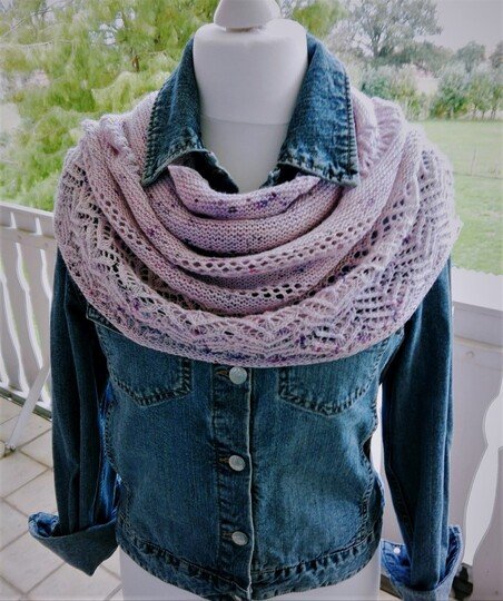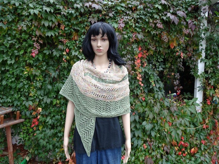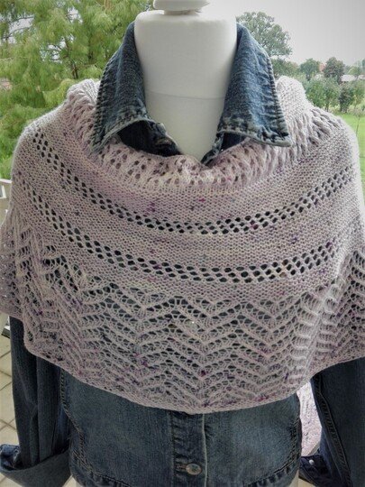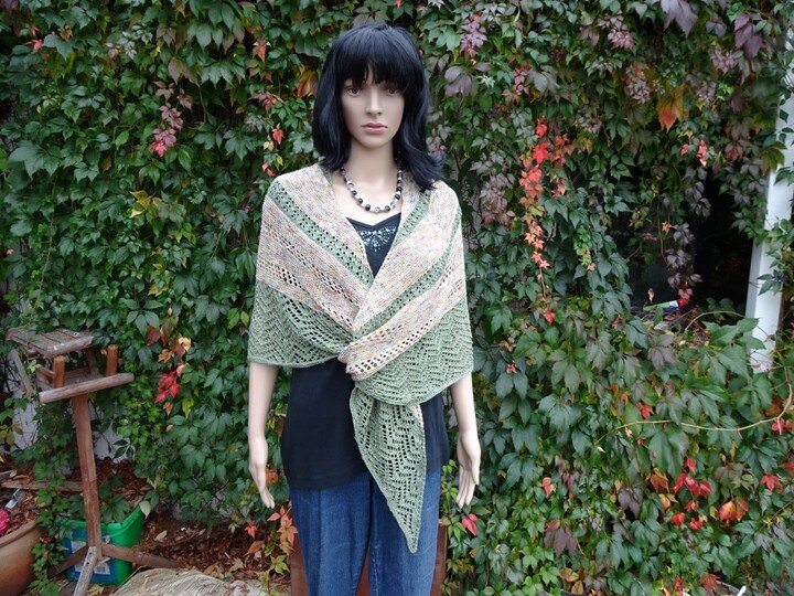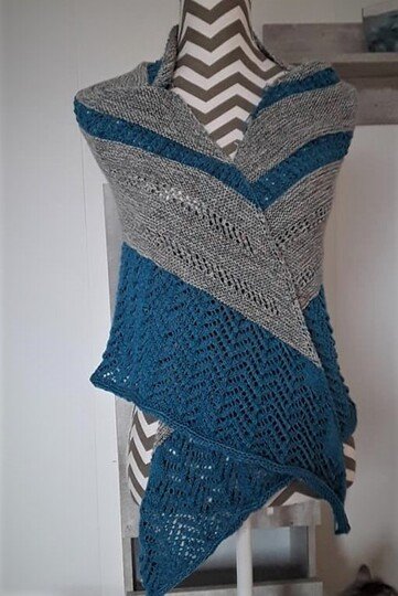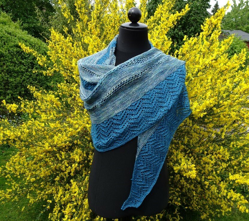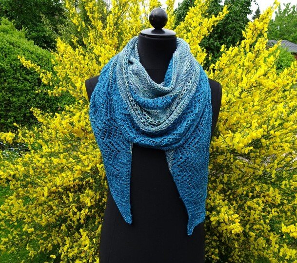 Ich habe die blaue version mit 100g Merino Silk und 100g Marcia Lace (doppelt verstrickt) gestrickt und