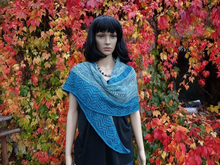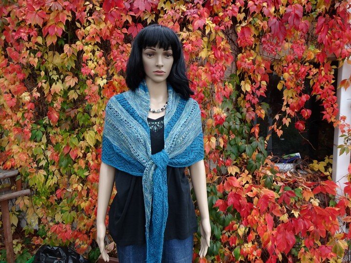 Die blaue Version ist mit Merino Silk und Lace von Emilou gestrickt.