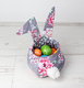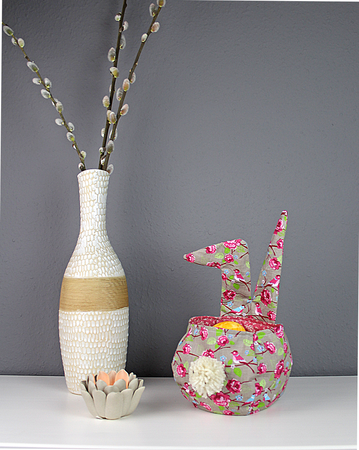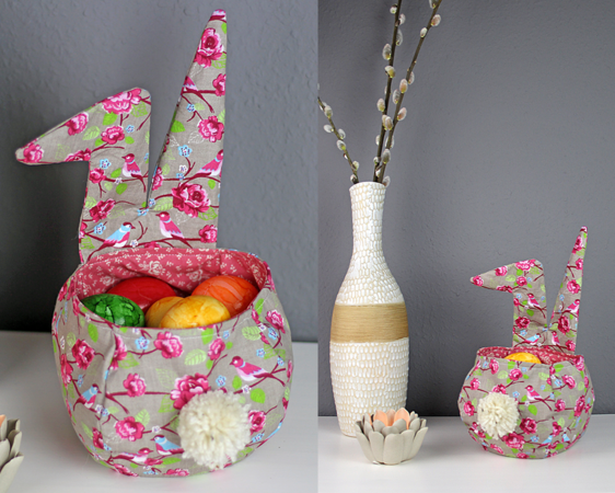 Bebilderte Schritt-für-Schritt-Nähanleitung inkl. Schnittmuster im PDF-Format mit über 100 Farbfotos für einen Stoffkorb mit Hasenohren und Puschelschwanz aus Wolle. Geeignet als Osterkörbchen, Eieraufbewahrung oder Geschenkverpackung für Ostern. Das Schnittmuster ist in 2 Größen in Originalgröße enthalten – einfach ausdrucken und loslegen.
