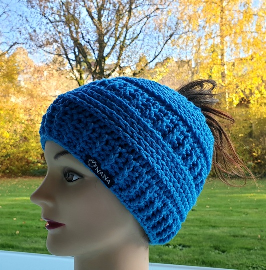 Die messy bun oder Zopfmütze ist das „must have“ in diesem Jahr. Endlich müssen die Haare nicht mehr unschön unter die Mütze gequetscht werden und der passende Loop ist auch dabei. Die langen Haare fallen schön und auch gezopfte Frisuren kommen super zur Geltung, da das eingehäkelte Haargummi sich jeder Haar- und Zopfdicke anpasst.