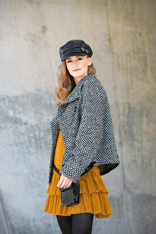 Diese kurze, weite Jacke mit Campingkragen passt perfekt auf Kleider, Röcke und Hosen. Sehr lässig ist sie offen getragen, wenn es wärmer sein soll, kann sie mit zwei Knöpfen geschlossen werden.