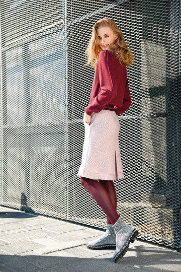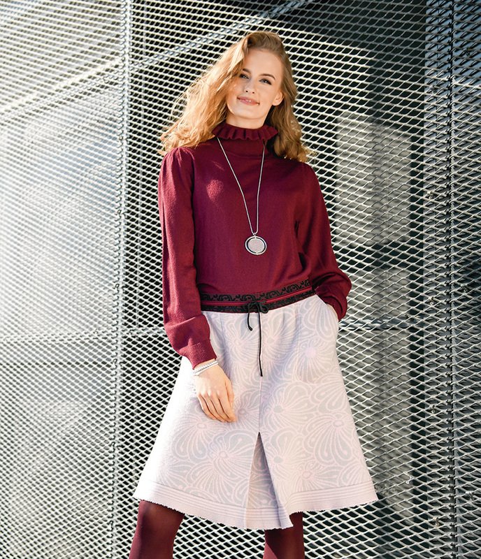 Ganz im Trend liegt der abgesteppte Gummibandbund, der einen Reißverschluss überlüssig macht.