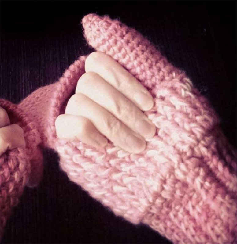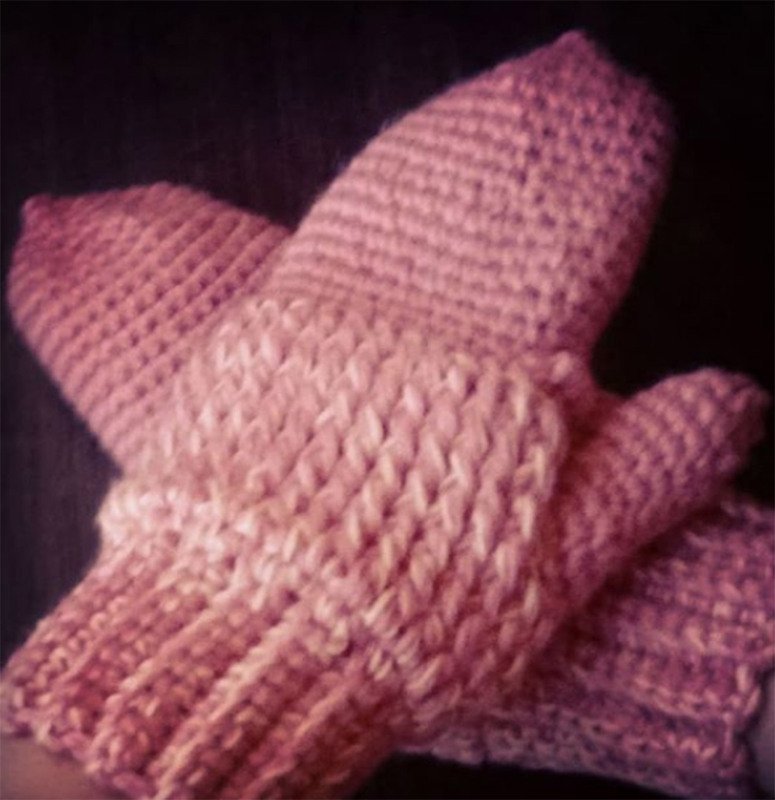 I began to crochet them with 3 threads: merino wool in 2 threads and 1 thread of cotton yarn, but finished with 2 merino threads (fingers) without cotton thread. Used E-4 crochet hook (3.5mm).