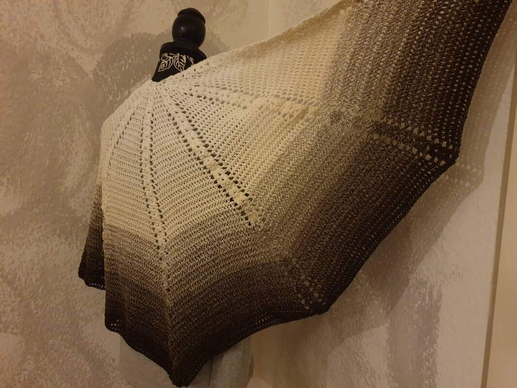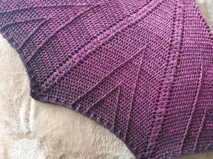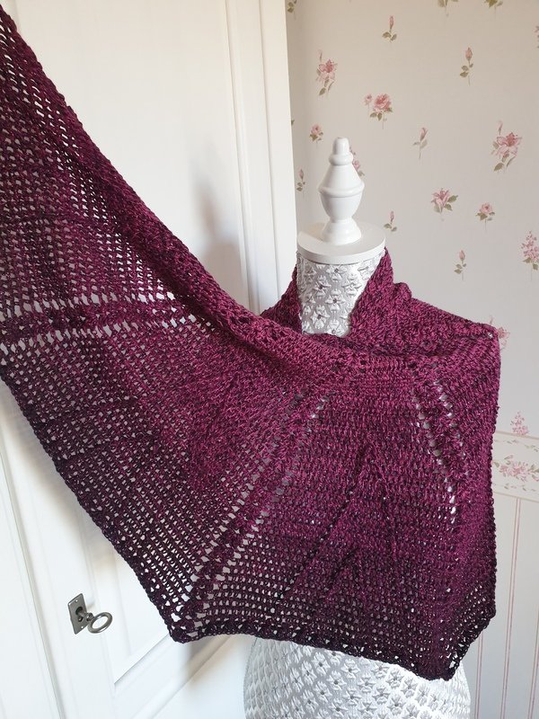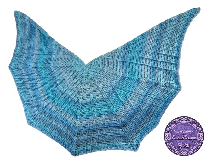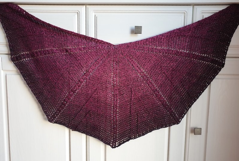 Das Tuch ist in Fledermausform gestaltet und in jeder Länge/Größe machbar, ebenso ist die Wolle frei wählbar, unpassend gibt es nicht. Es wird aufgrund des Musters eher dicht und ist damit für Herbst und Winter gut geeignet.