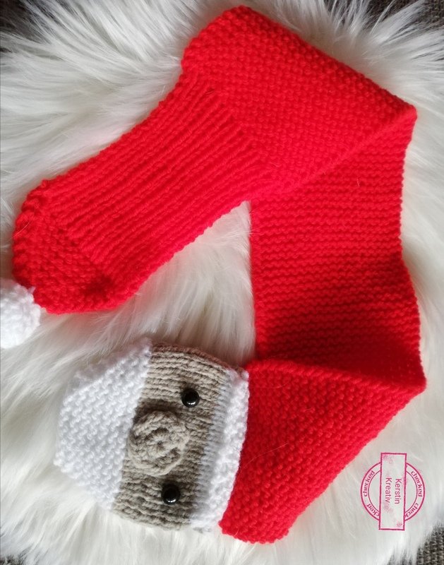 Sie kaufen hier die Strickanleitung für diesen süßen Steckschal mit Motiv Weihnachtsmann. Somit wird ihr Baby oder auch das Kleinkind, zu einem absoluten Hingucker.