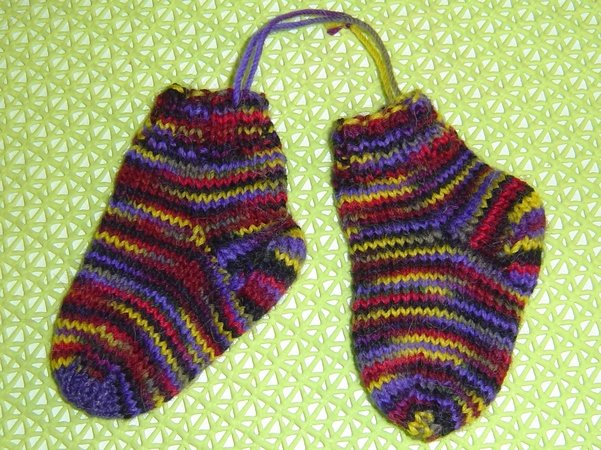 Dies ist ein bebilderter Sockenstrick-Lehrgang anhand Baby-Socken Größe 15 gestrickt aus 4-fädigem Sockengarn mit Tabellen für alle Größen
