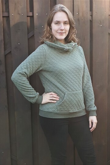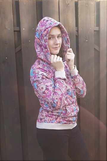 Im Schnittmuster ist das Add-on für die sparsame Kapuze enthalten. Diese wird mit einem Bündchen an der Kapuzenkante genäht und dadurch wird keine Innenkapuze benötigt.
