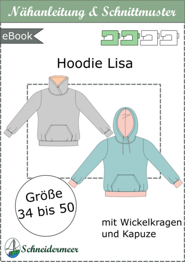Das Modell „Lisa“ ist ein vielseitiger Hoodie mit Wickeloptik, der sich perfekt für den Alltag eignet. Der Hoodie kann entweder mit einer Wickelkapuze oder einem Wickelkragen genäht werden. Beide Varianten lassen sich individuell mit Ösen und Kordel dekorieren, um den persönlichen Stil zu unterstreichen.