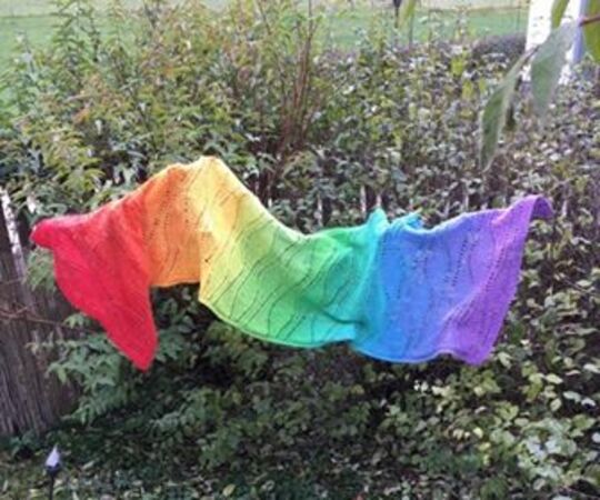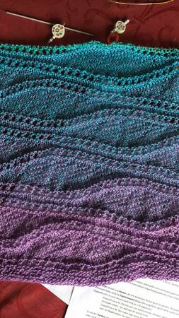 Anleitung zum Stricken des Schals "Night & Day" mit verkürzten Reihen und einfachen Lochmusterreihen.