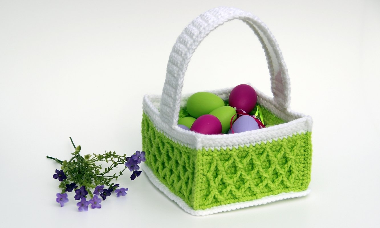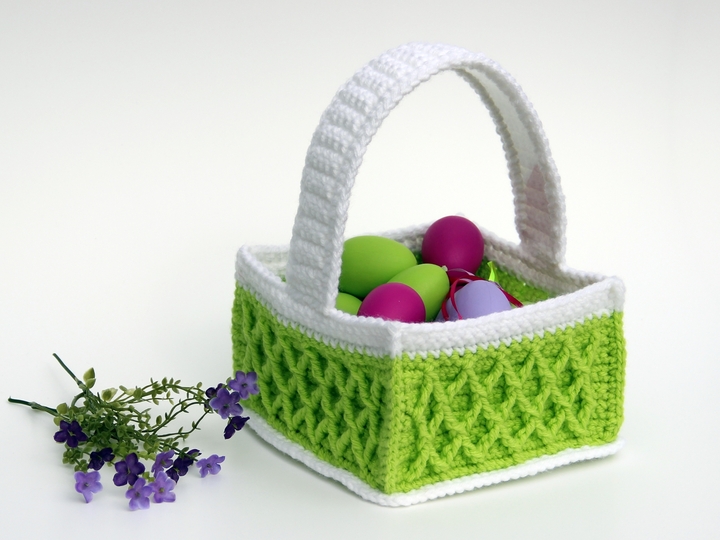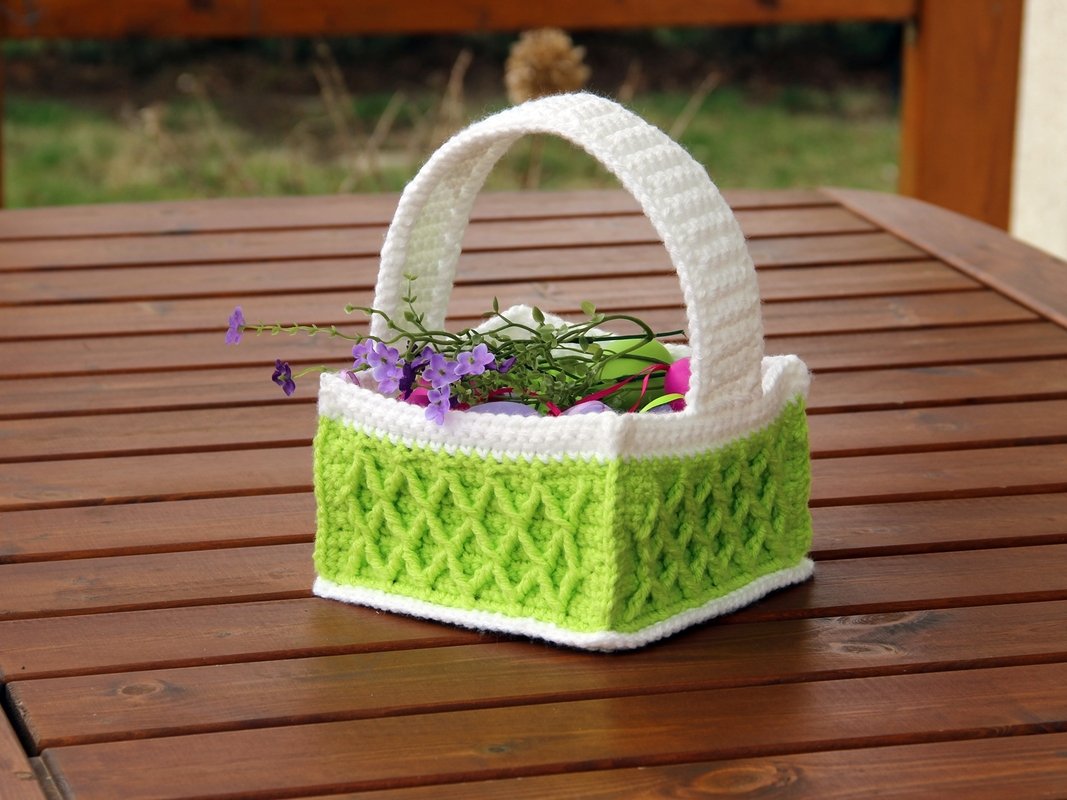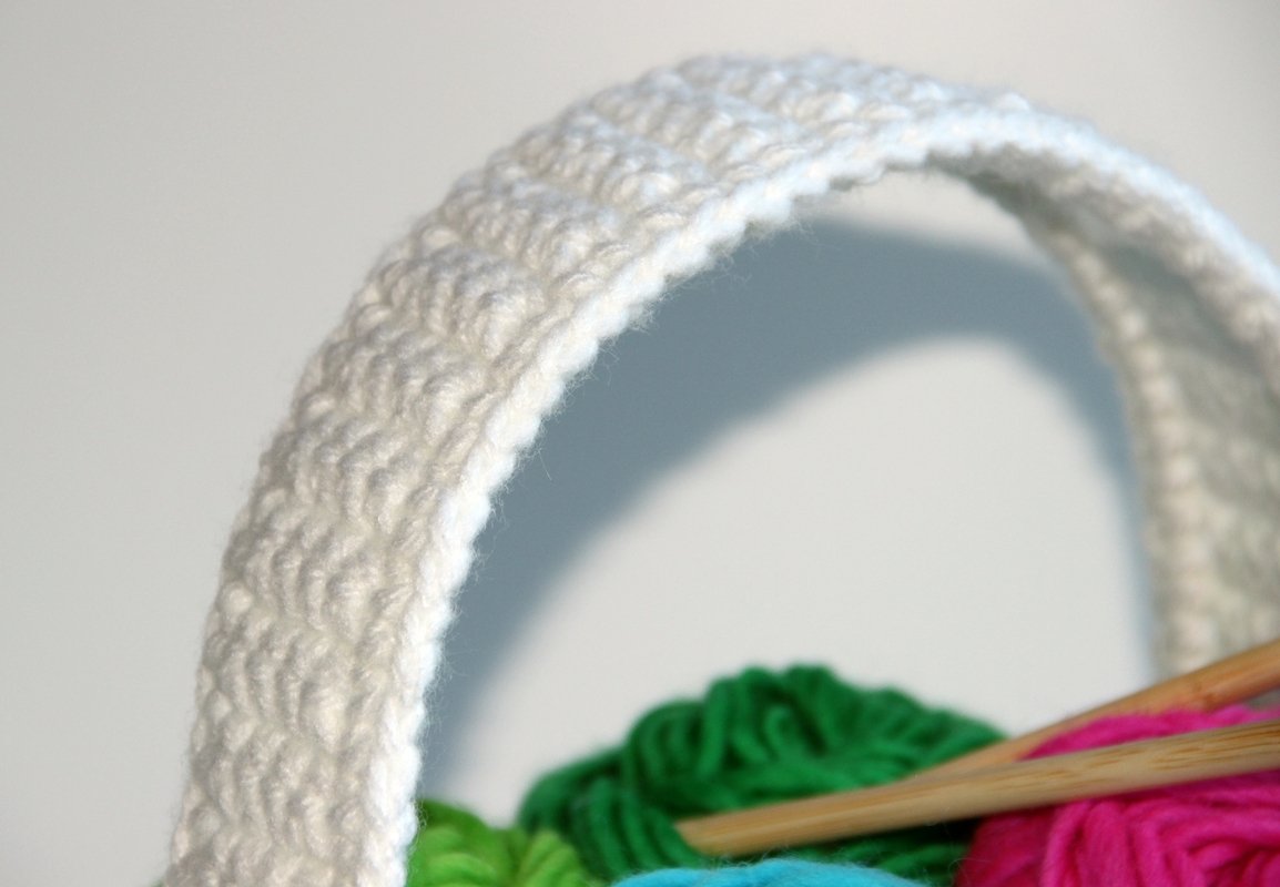 Zuerst häkeln wir die Bodenplatte. An die Bodenplatte häkeln wir die 4 einzelnen Seitenteile, die wir danach miteinander verbinden. Am Schluss häkeln wir separat einen Henkel, in den wir zur Stabilisierung innen mit einem Stück Plastikfolie versehen. Der Henkel wird angenäht und fertig ist das Körbchen.