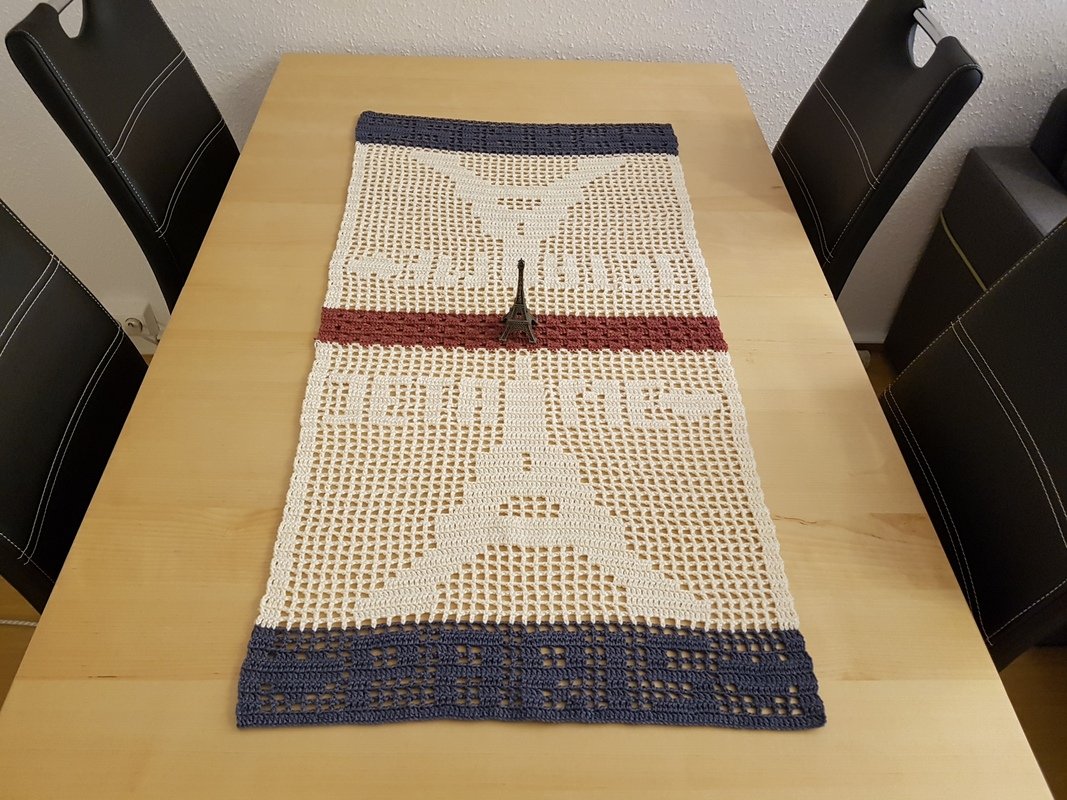 Häkelanleitung für einen schönen Tischläufer im Paris Design.