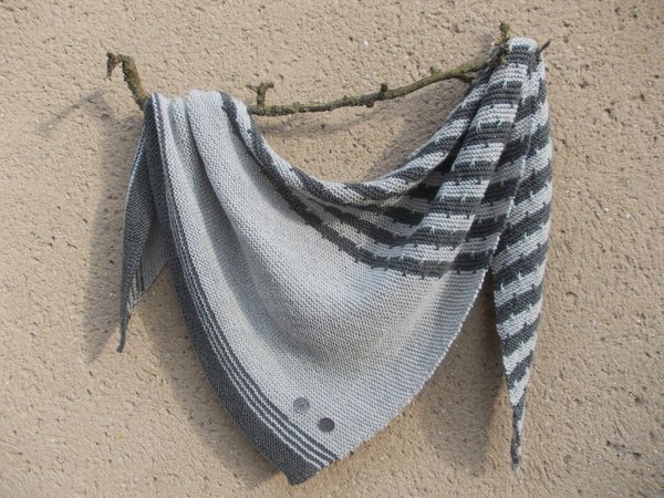 Ein paar Hebemaschen, Streifen und evtl. geschickt plazierte Knöpfe machen dieses Tuch zu Deinem Lieblingsstück und passt sich ganz wunderbar jedem Outfit an.