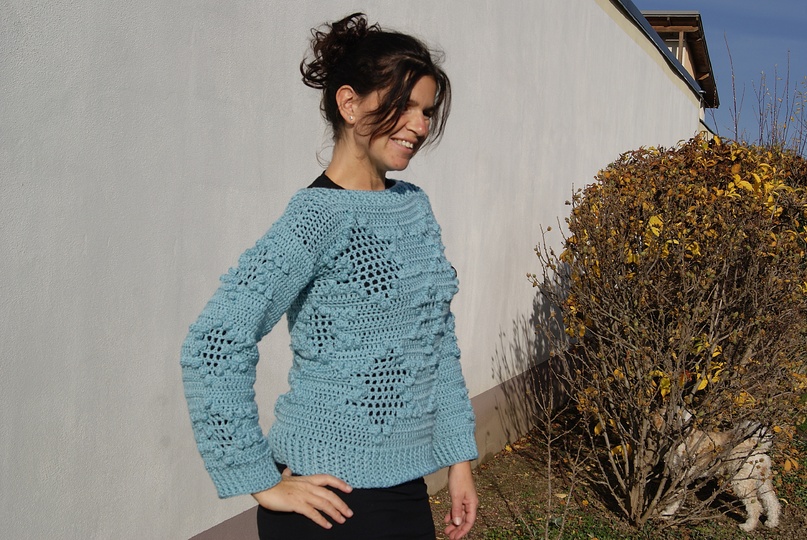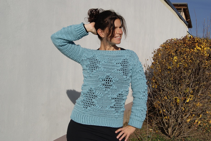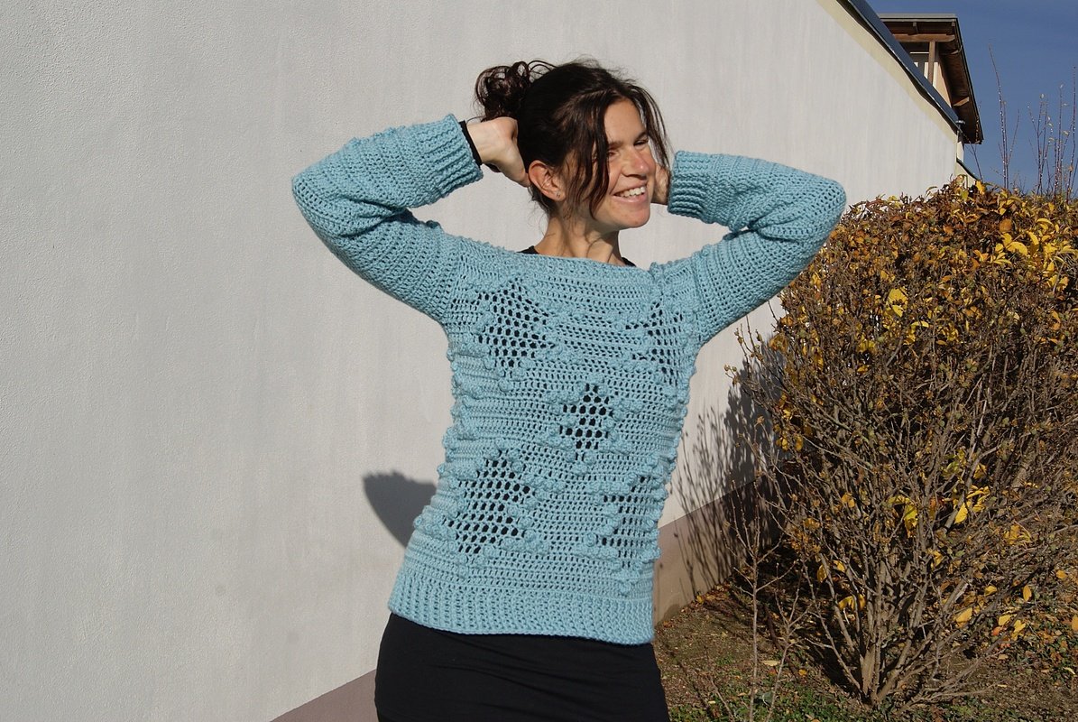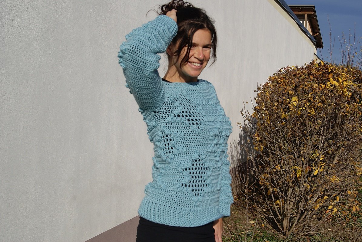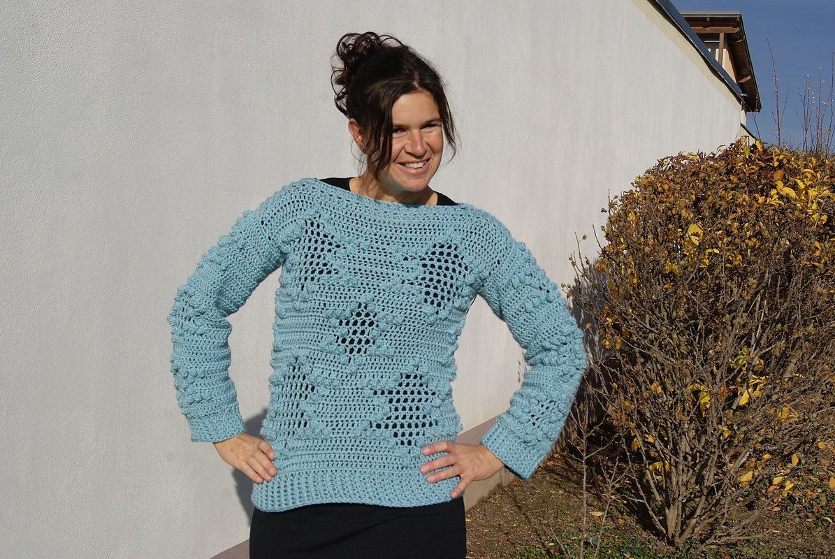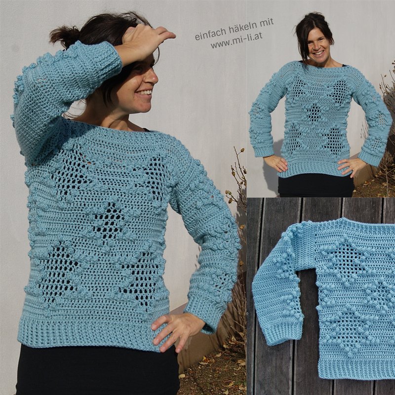 Traumhaft schöner und super angenehmer Pulli passend zu jeder Gelegenheit! Das raffinierte Muster ist ein garantierter Hingucker und macht riesig Spaß zu häkeln.