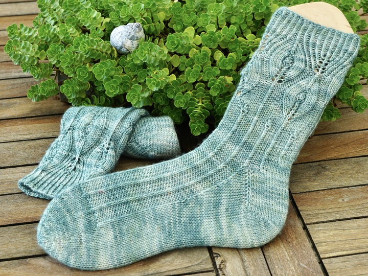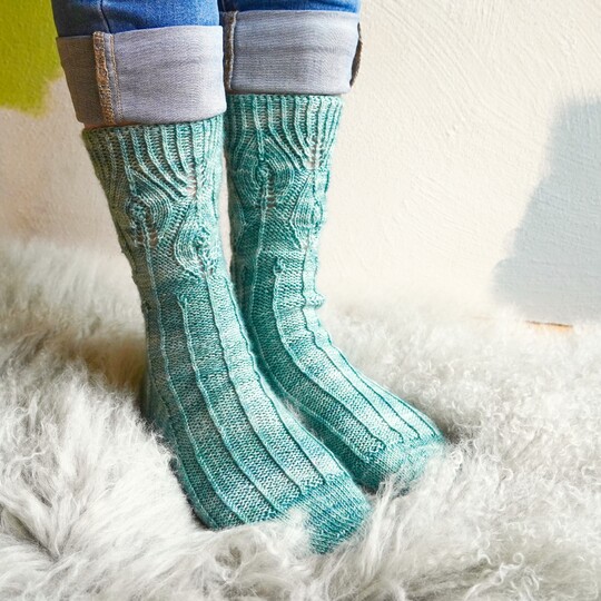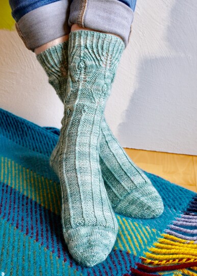 Die ausführlich gestaltete Anleitung ist für drei Größen beschrieben und bietet ein abwechslungsreiches Strickvergnügen für alle fortgeschrittenen StrickerInnen! Alle Abschnitte sind Schritt für Schritt erklärt und bauen logisch aufeinander auf, so dass Ihr nur entspannt der Anleitung folgen müsst, um mit einem Paar wirklich besonderer Socken mit sehr guter Passform belohnt zu werden. Das Federmuster am Schaft wird nach Strickschrift gearbeitet.