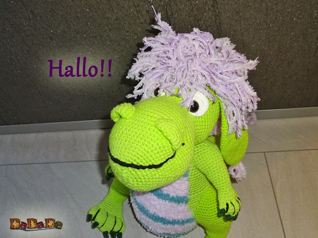 Mit Nadelstärke 3 gehäkelt, wird Babsy ungefähr; 32cm hoch und 40cm lang