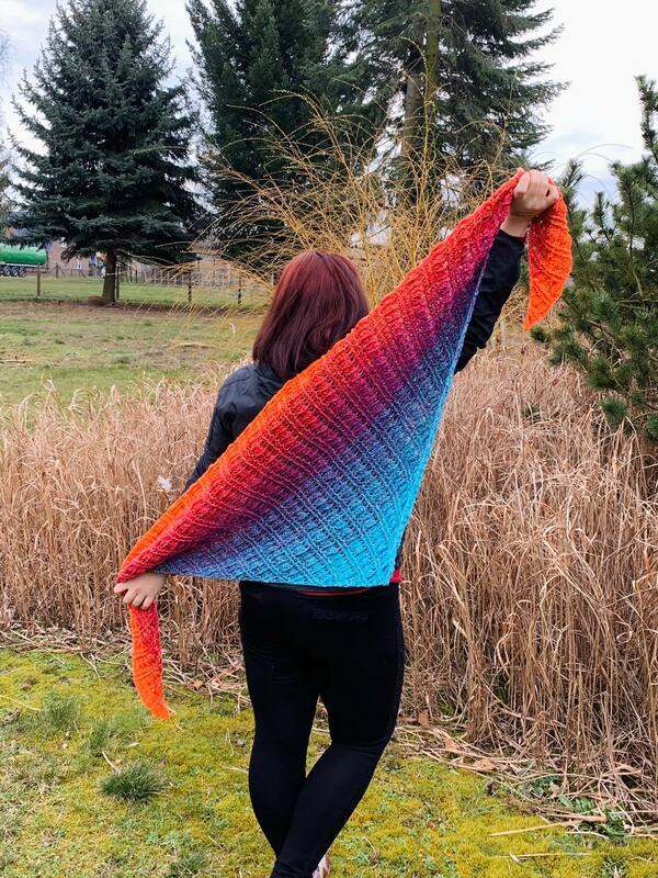 Das Tuch kann in jeder beliebigen Größe gehäkelt werden. Ich habe bei einem Verbrauch von 1300/4+1 mit NS 4.5 eine Größe von 188x65cm erreicht.