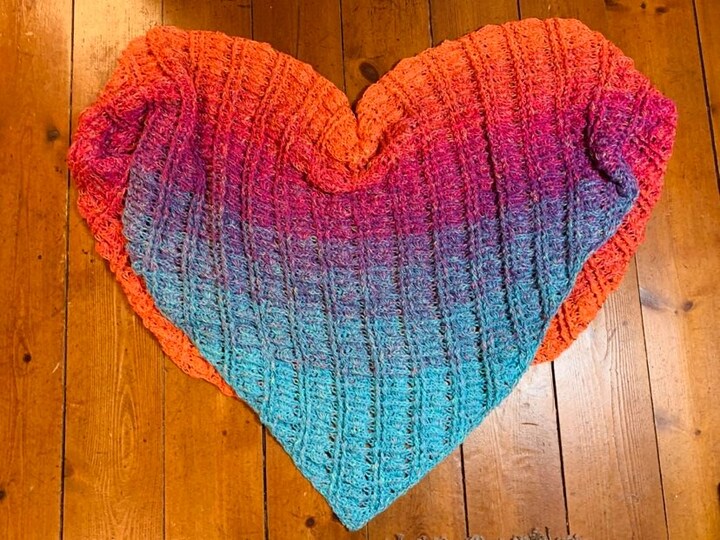 Wer Reliefstäbchen liebt, wird dieses Tuch lieben. Hier geht es zu einer zauberhaften Anleitung für ein kuschliges Relieftuch. Es wird von unten nach oben gehäkelt, also an der Spitze begonnen.