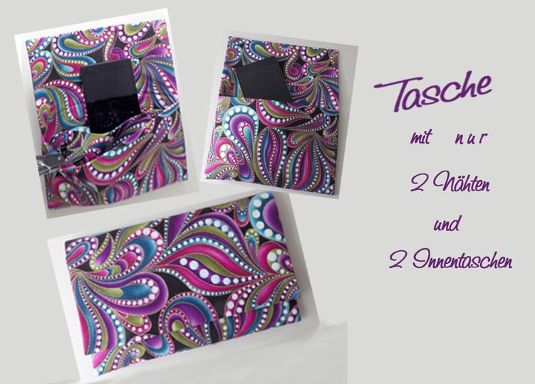Eine kleine Tasche für Handy und Kleinigkeiten, aus glamorösen Stoffen genäht auch für den Abend. (Clutch) Der Stoff wird einfach gefalten und mit 2 Seitennähten geschlossen - fertig. Das ideale Modell für jeden Nähanfänger an dem man sich ausprobieren kann. Der Außenstoff ist zugleich Futterstoff.