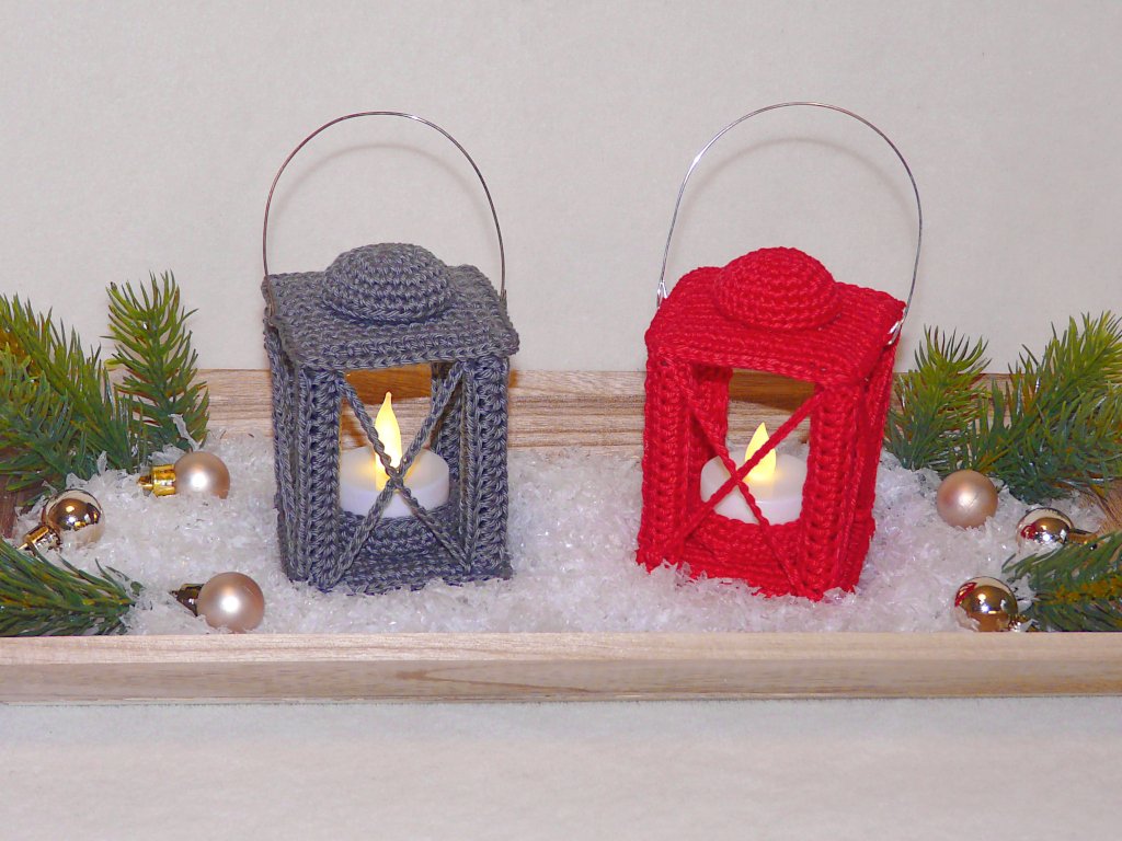 Diese kleinen Laternen sind eine hübsche Deko für die Winter- und Weihnachtszeit. Mit ihrem warmen Licht verbreiten sie in der dunklen Jahreszeit eine wohlige Atmosphäre. Die Laternen sind sehr schnell gehäkelt. Häkelt sie euch in euren Lieblingsfarben und macht euch oder euren Liebsten eine große Freude damit.