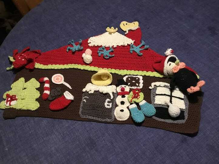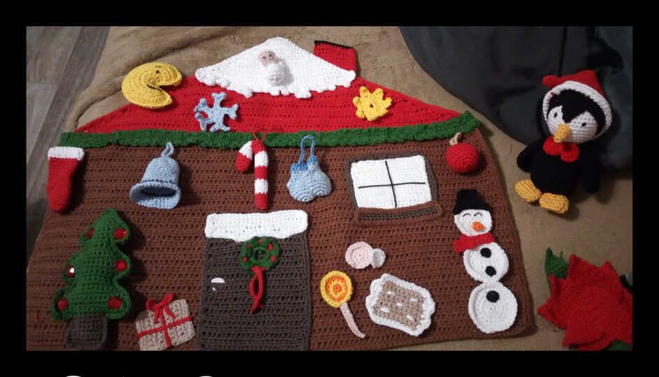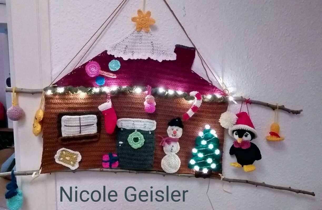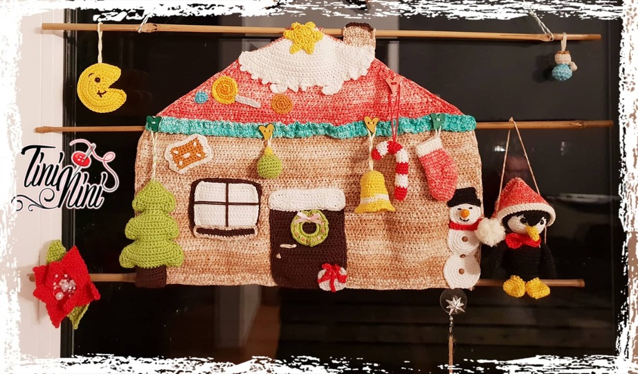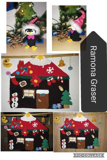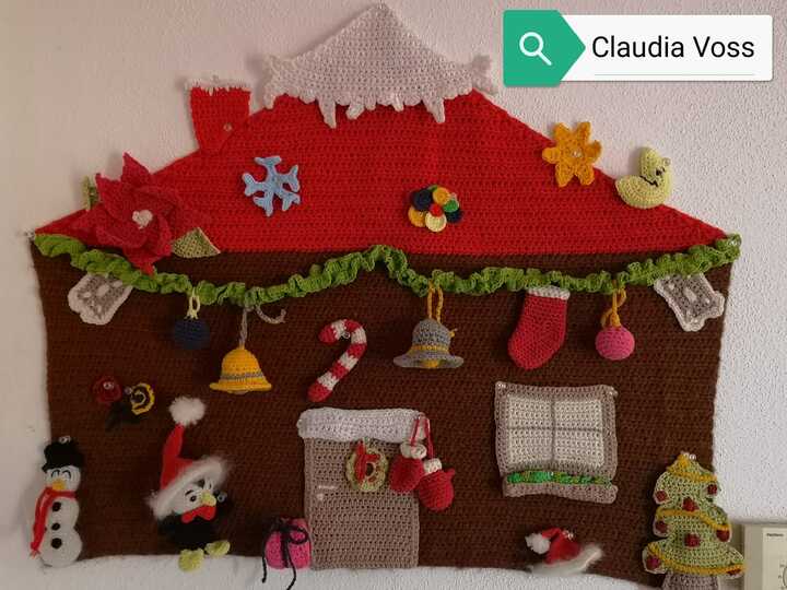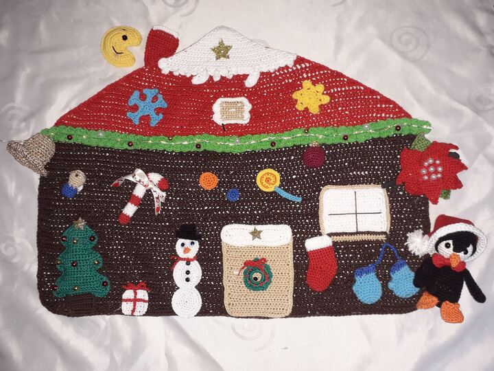 Das Haus ist mit der angegebenen Wolle ca. 45 x 60 cm groß. Dies variiert natürlich je nach Wolle, Nadelstärke und ob du fest oder locker häkelst.