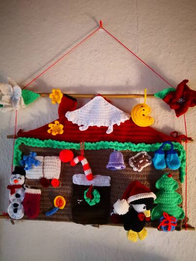 Die Farben dürft ihr bei den einzelnen Türchen frei wählen. Oben stehen die Farben drin, die wir genommen haben.