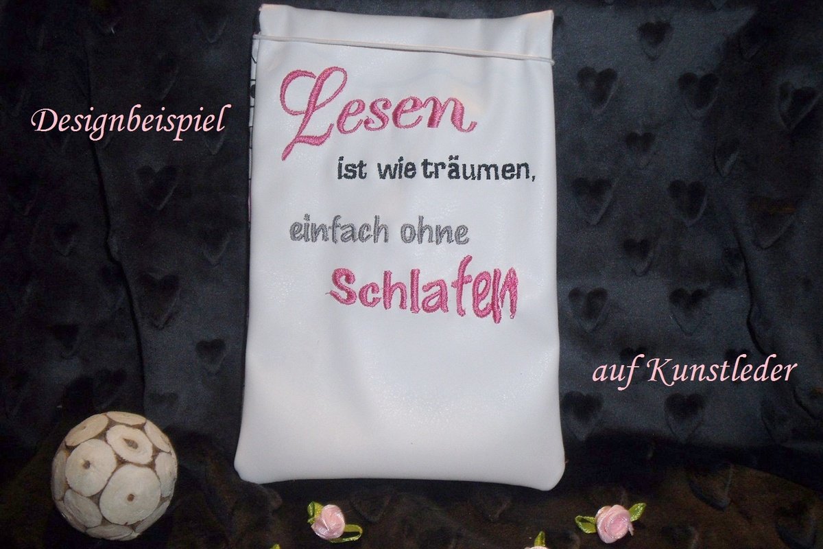 Hast du noch keine schöne Hülle für deinen E-Reader oder du verschenkst einen solchen und möchtest ihn etwas personalisieren? Dazu ist diesen Dateienpaket wie geschaffen! Bestimmt findest du ein passendes Motiv, ansonsten kannst du die Blanko-Hülle mit deinen eigenen Motiven besticken. Immer noch nicht das Richtige? Für diese Fälle habe ich noch zwei Sprüche beigelegt, die perfekt auf die Blanko passen. Wenn du noch den Namen des Beschenkten einfügst, dann wird es sogar noch etwas persönlicher. Bei einigen Hüllen kannst du sogar noch eine Aussentasche machen, so hast du Platz für Anleitung, Notizen oder Kabel und so weiter.