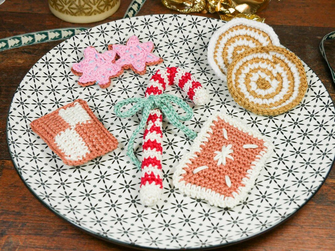 In dieser einfachen Anleitung für Anfänger erkläre ich dir auf 12 Seiten Schritt für Schritt mit 25 Bildern, wie du 5 verschiedene Plätzchensorten häkeln kannst.