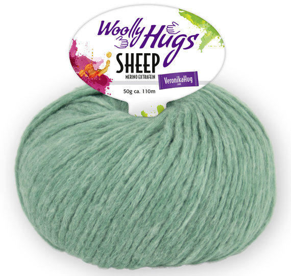 insgesamt je 100 g Woolly Hugs SHEEP (50% Schurwolle, 28% Baumwolle, 22% Polyamid, LL = 110 m/50 g) in Grün (Fb 72) und Beige (Fb 05) von Langendorf & Keller