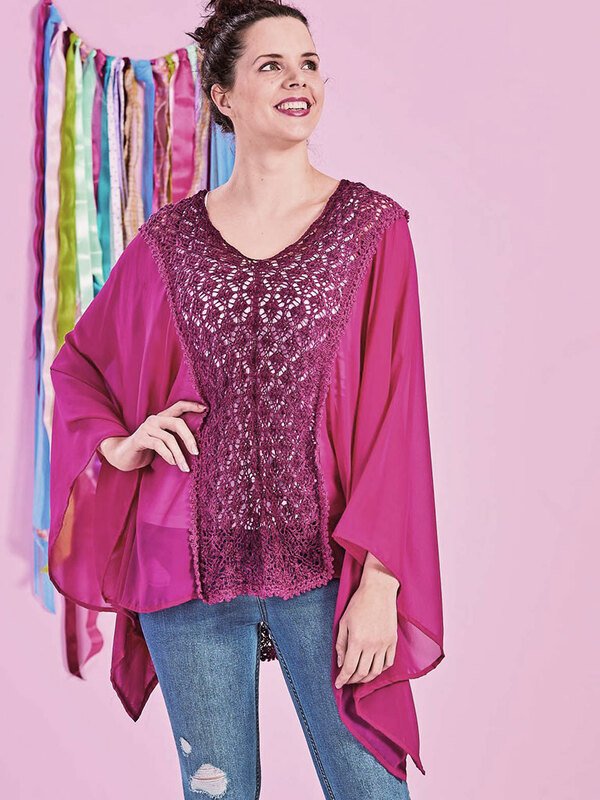Aus diesem Materialmix entsteht ein schneller schicker luftigleichter Poncho. Besonders geeignet um ein paar Röllchen zu verstecken.