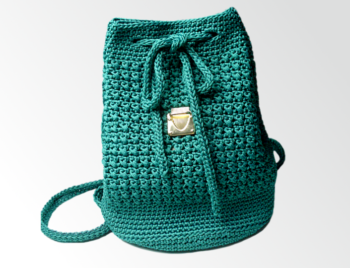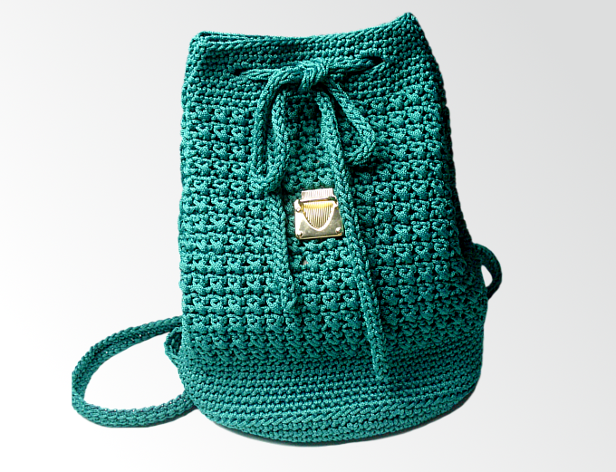 Hübscher und sehr eleganter Häkelrucksack, aus Makramee-Garn.