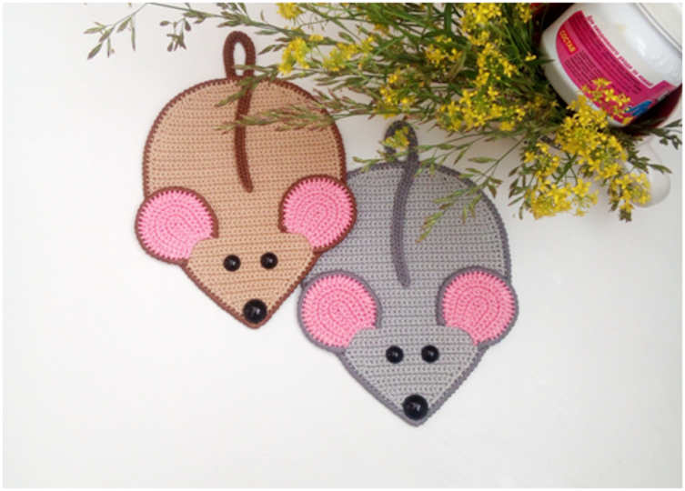 Größe: Mit dem von mir empfohlenen Garn ist der Topflappen ca. 16 x 19 cm groß
