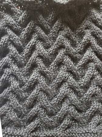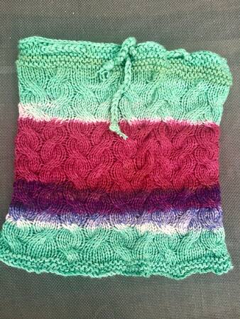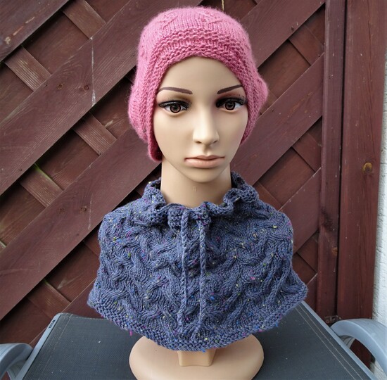 Die Wolle wird doppelfädig mit einem einfachen Zopfmuster zu einem wechselbaren Cowl.