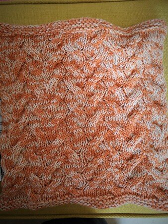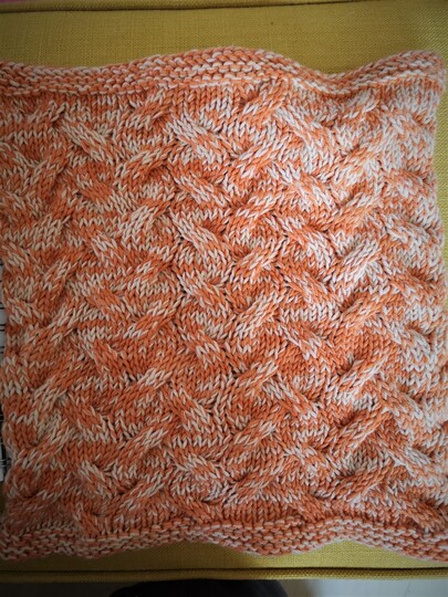 Ich bekam einen gefärbten Strickschlauch, der förmlich nach diesem Muster gerufen hat, so das der Farbverlauf richtig zur Geltung kam.