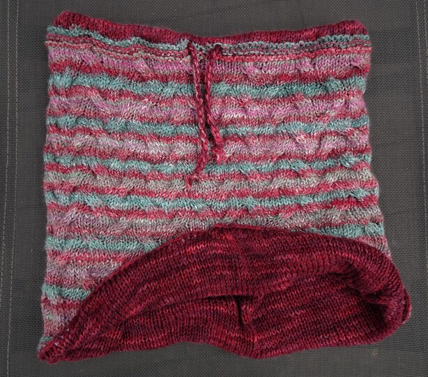 Ein schneller warmer Cowl sollte her und so habe ich Sockenwolle doppelfädig verstrickt.