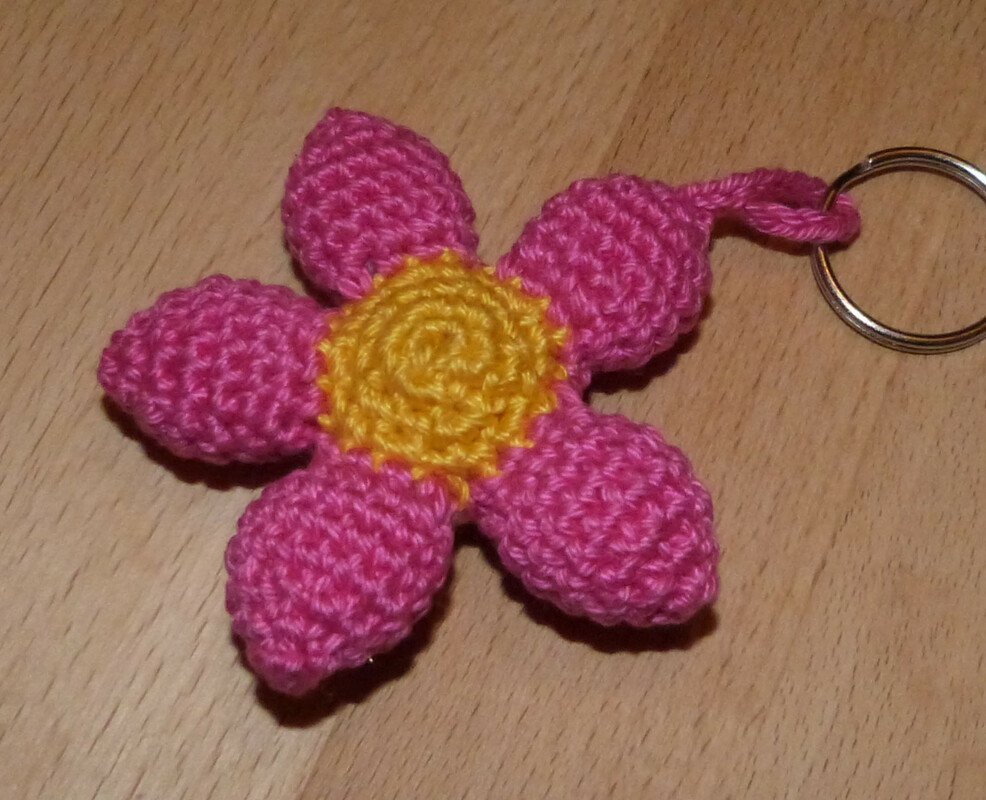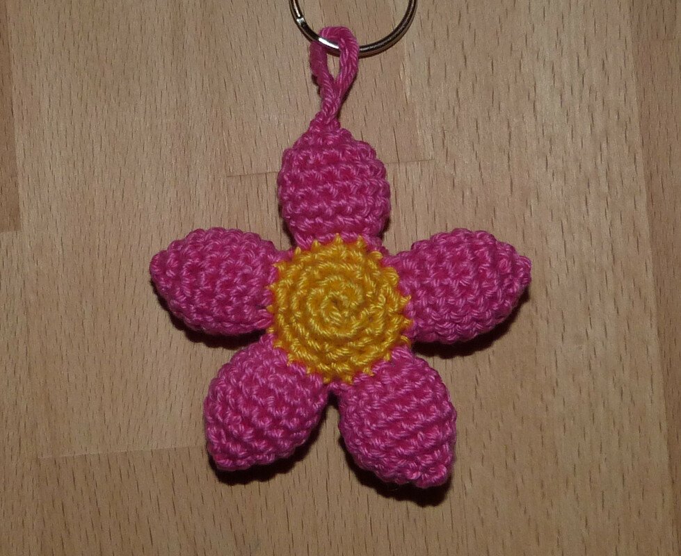 Die kleine pummelige Blüte möchte gern in deinen Lieblingsfarben gehäkelt werden und an deinem Schlüsselbund oder an deiner Tasche baumeln und dich begleiten. Auch als kleines Mitbringsel für gute Freunde oder als Geschenkanhänger geeignet.