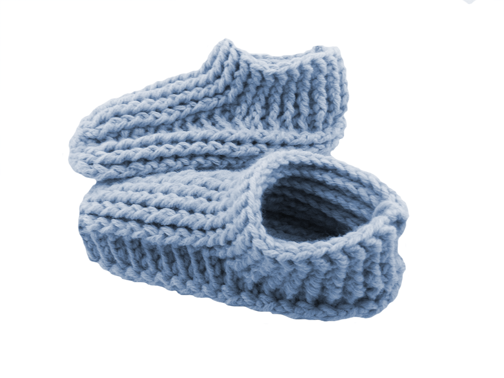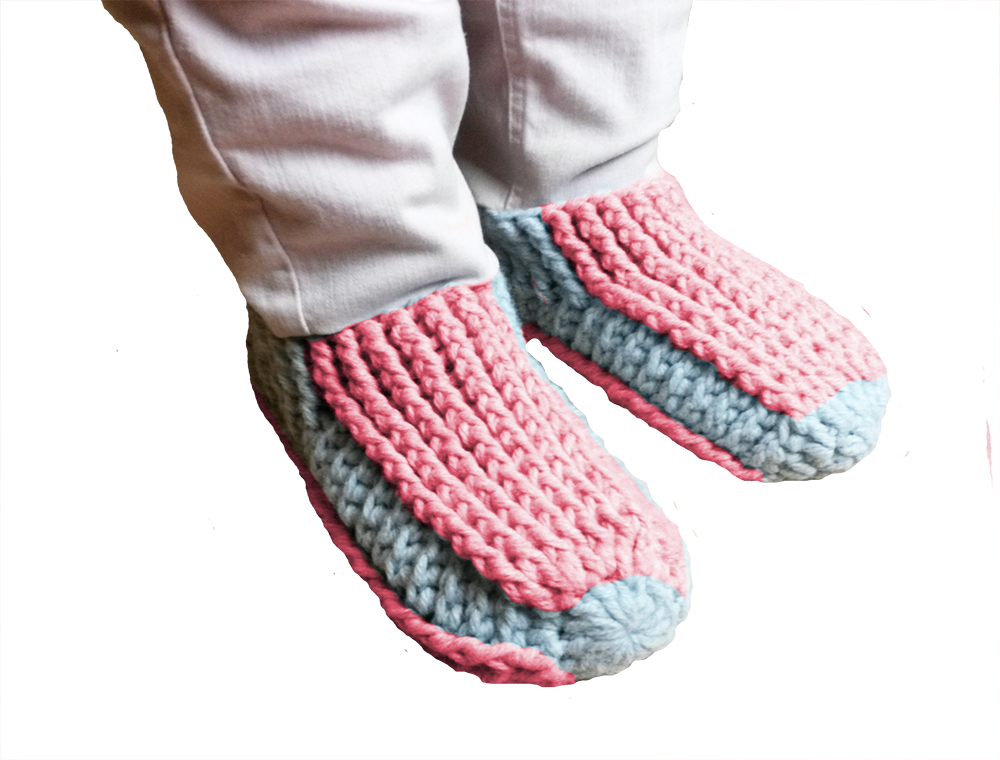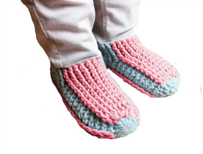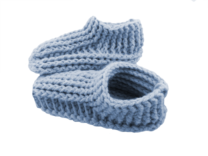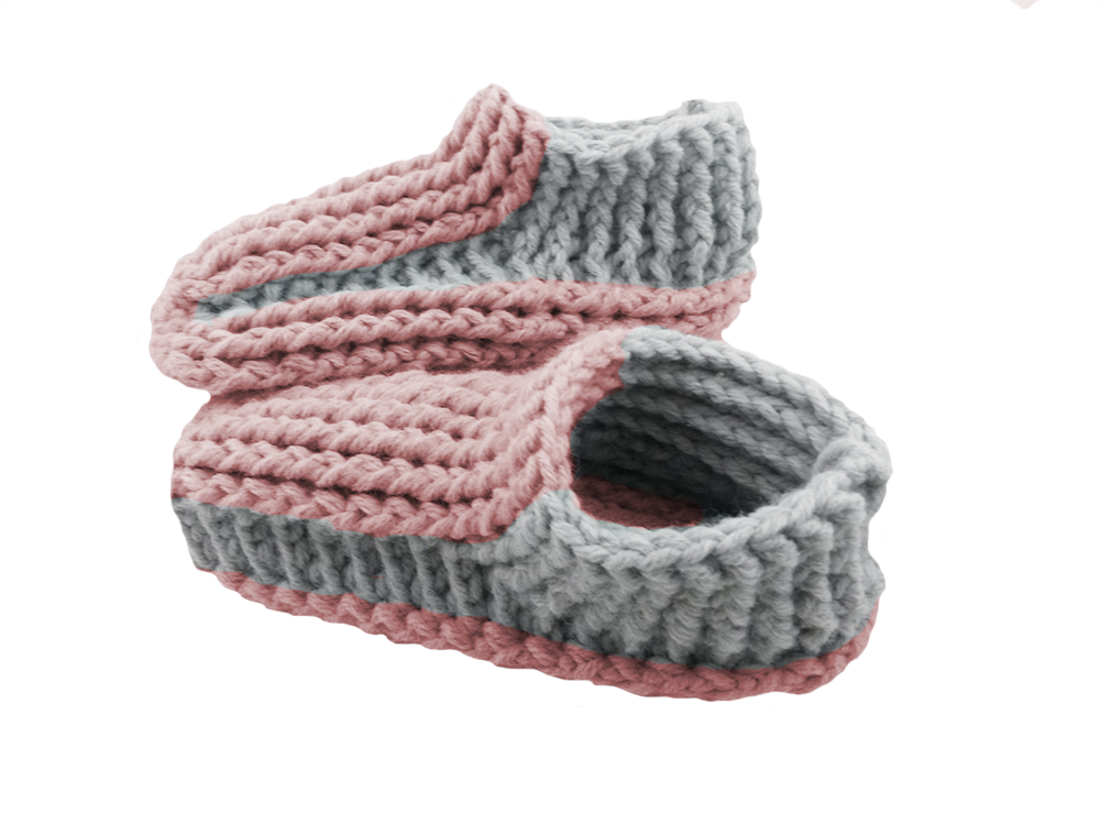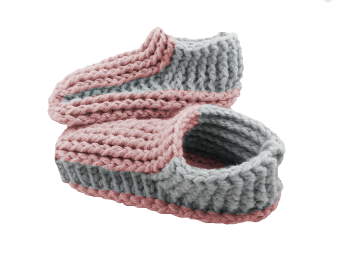 Für die hier gezeigten Slipper brauchen Sie ca. 150 g Wolle bei Gr 36-38.