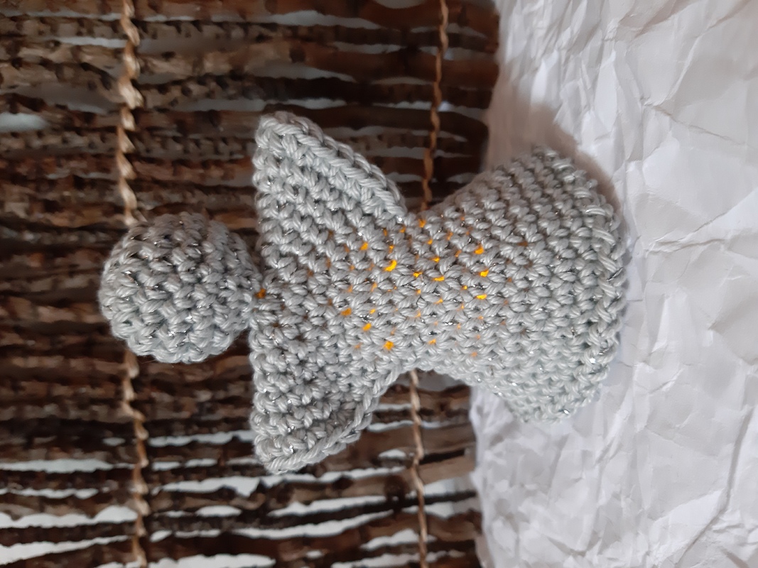 Der fertige Engel hat mit der angegebenen Wolle und Nadelstärke eine Größe von ca 10 cm.