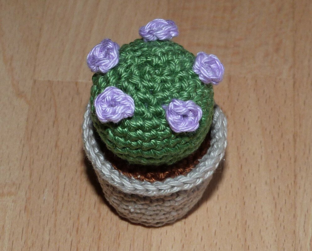 Bei Verwendung der angegebenen Garn- und Nadelstärke wird der Kaktus etwa 6,5 cm hoch und 4 cm breit.