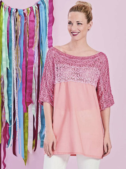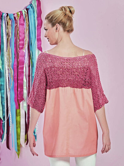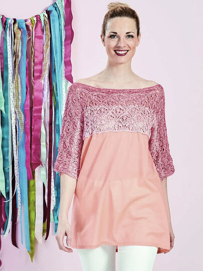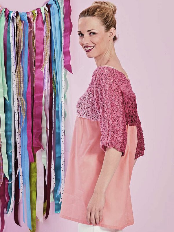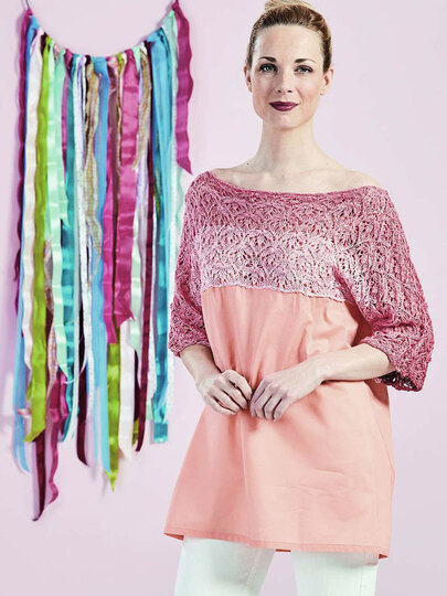 Das wunderschönes Muster bedeckt zu 3/4 die Arme, führt über die Schultern und reicht bis über die Brust. Der untere Teil wird mit deinem Passenden Stoff angenäht.